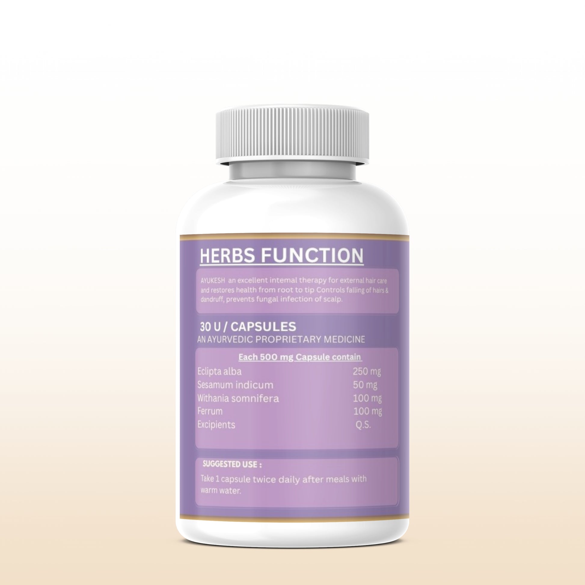 Ayukesh Hair Capsules support healthy hair growth and help maintain strong, vibrant hair. Formulated to nourish your scalp and hair follicles, these capsules promote natural hair vitality and reduce hair fall. Incorporate them into your daily routine for a gentle boost to your hair’s overall health and resilience.