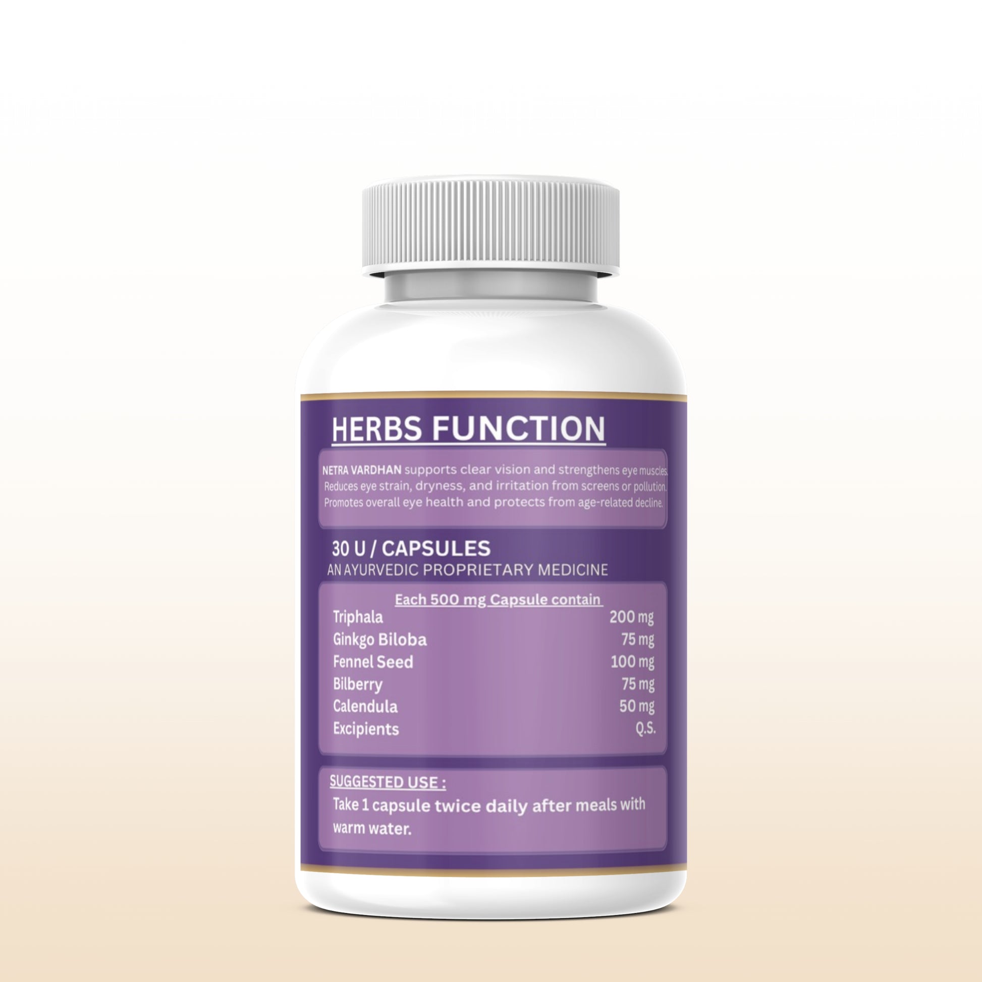 NETRA VARDHAN is designed to support and maintain healthy vision. This product helps protect your eyes from daily strain and promotes overall eye wellness, making it an ideal choice for those seeking to care for their eyesight naturally and effectively.